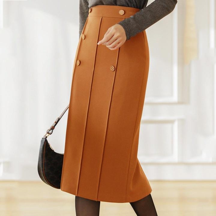 ✨Chân Váy Công Sở New Design Thiết Kê Dáng Váy Xếp Ly Dài Qua Gối Ôm Body , Phối Nút Kiểu Mới, Vải Tốt Co Giãn CV0073