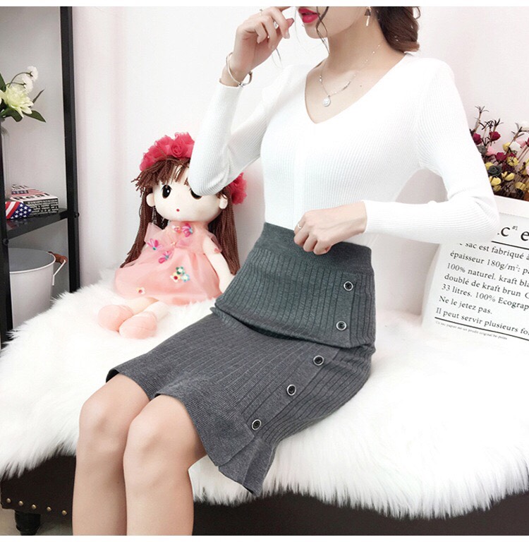 ✨Chân váy nữ,chân váy len đuôi cá phối cúc mẫu mới Cv10