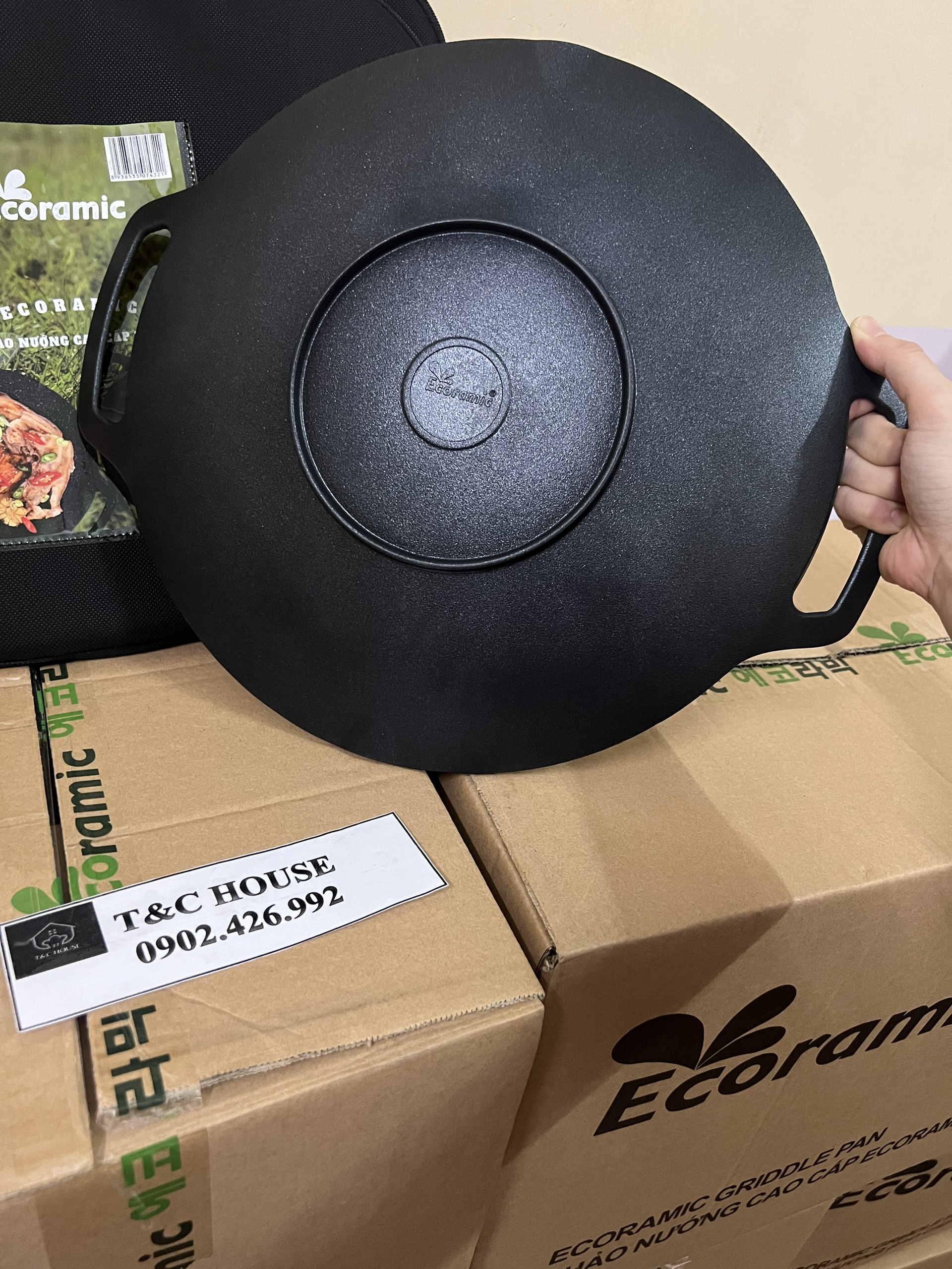 Chảo đá nướng cao cấp chính hãng Ecoramic nướng không dần dầu, dùng cực kỳ tiện lợi và đa năng. Size: 29x32cm, 36cm Chất liệu: Hợp kim nhôm cao cấp đúc nguyên khối bền bỉ