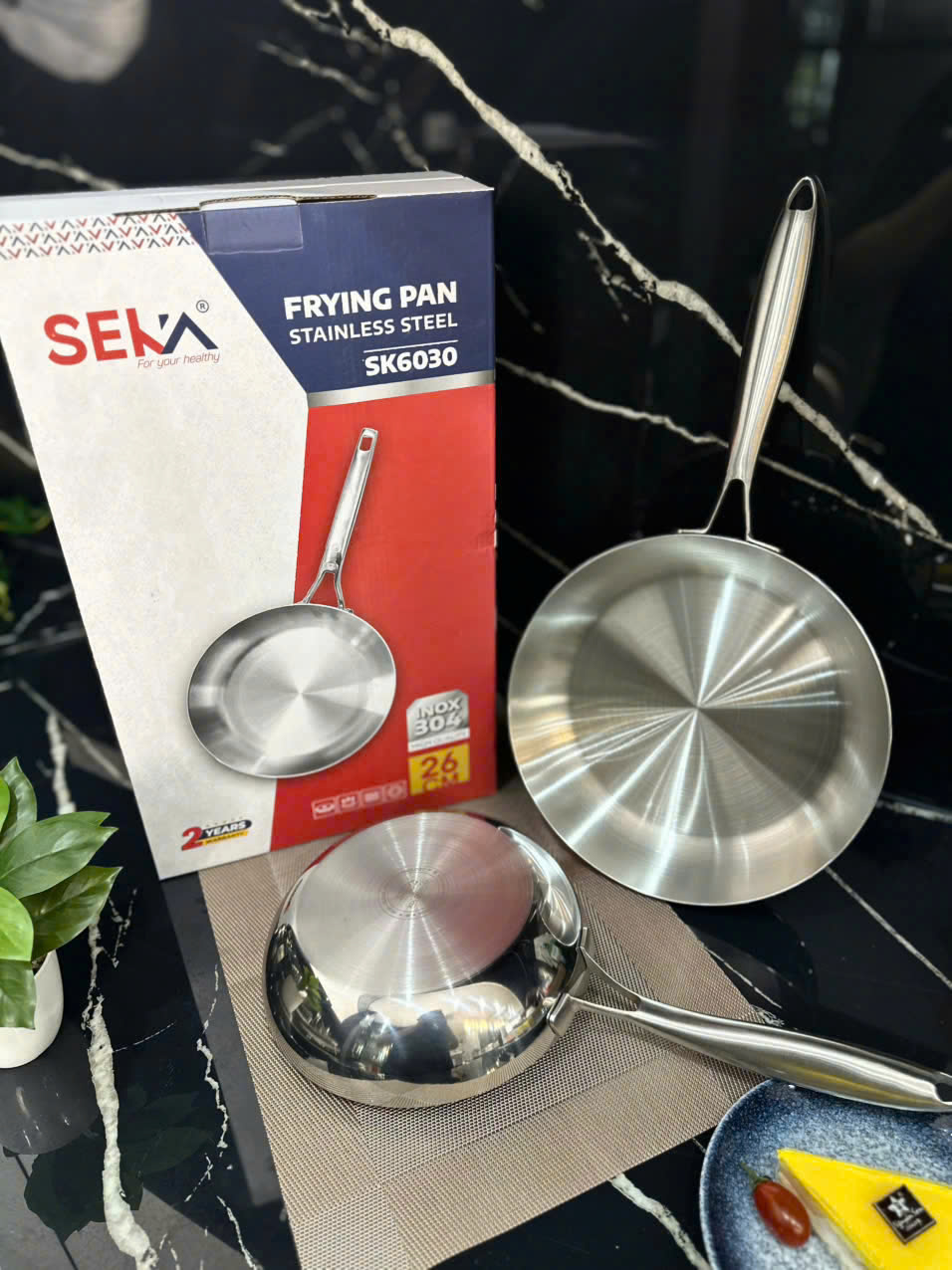 Tranh thủ hàng chảo inox lô mới về các chị dùng thử đi! Chảo nông lòng SEKA INOX Đúc Nguyên Khối size 22-26cm chất lượng Châu Âu, giá Việt Nam Đáng để dùng lắm ạ.
