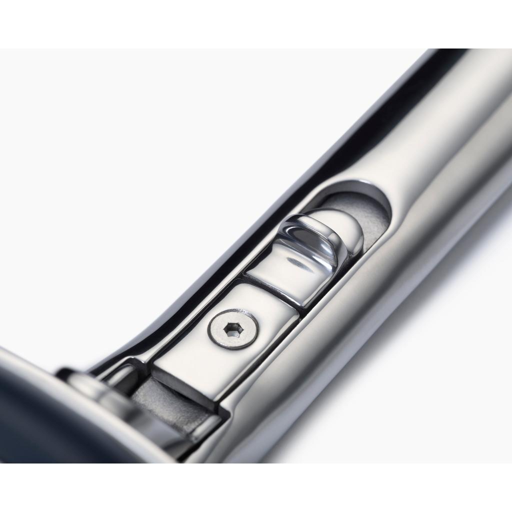 Tay cầm bằng thép không gỉ có thể gập lại được trang bị công nghệ SwingLock đã được kiểm tra tuổi thọ 20 năm.