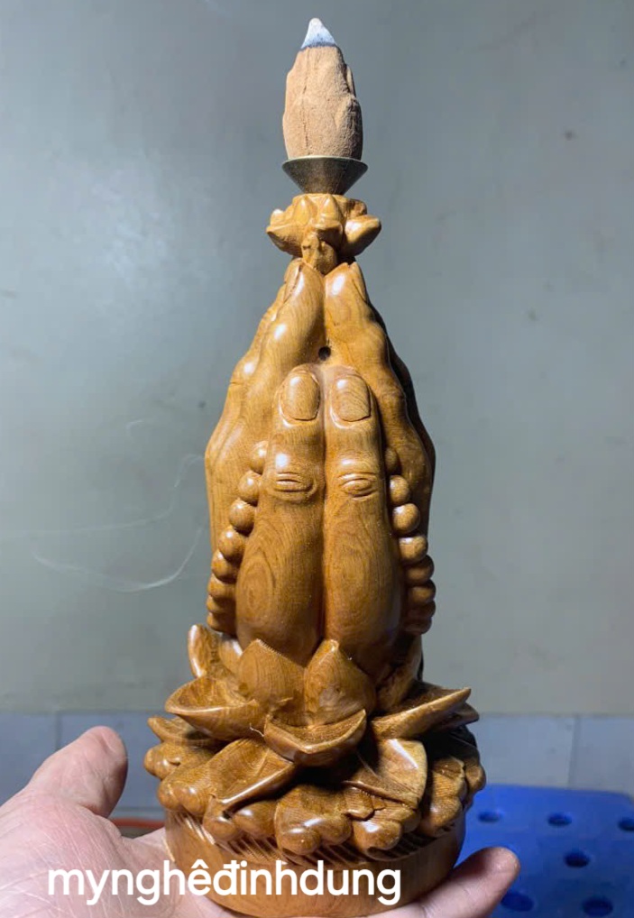 ✨Chắp tay niệm phật bằng gỗ bách xanh thơm nức cao 15x8x8cm