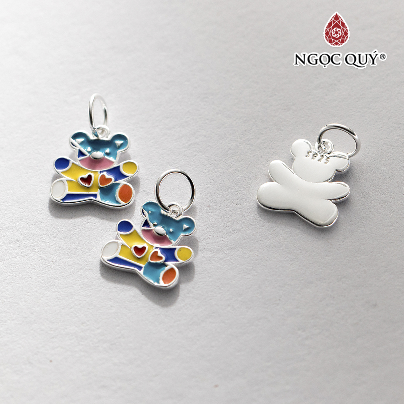 ✨Charm bạc treo hình chú gấu sắc màu - Ngọc Quý Gemstones