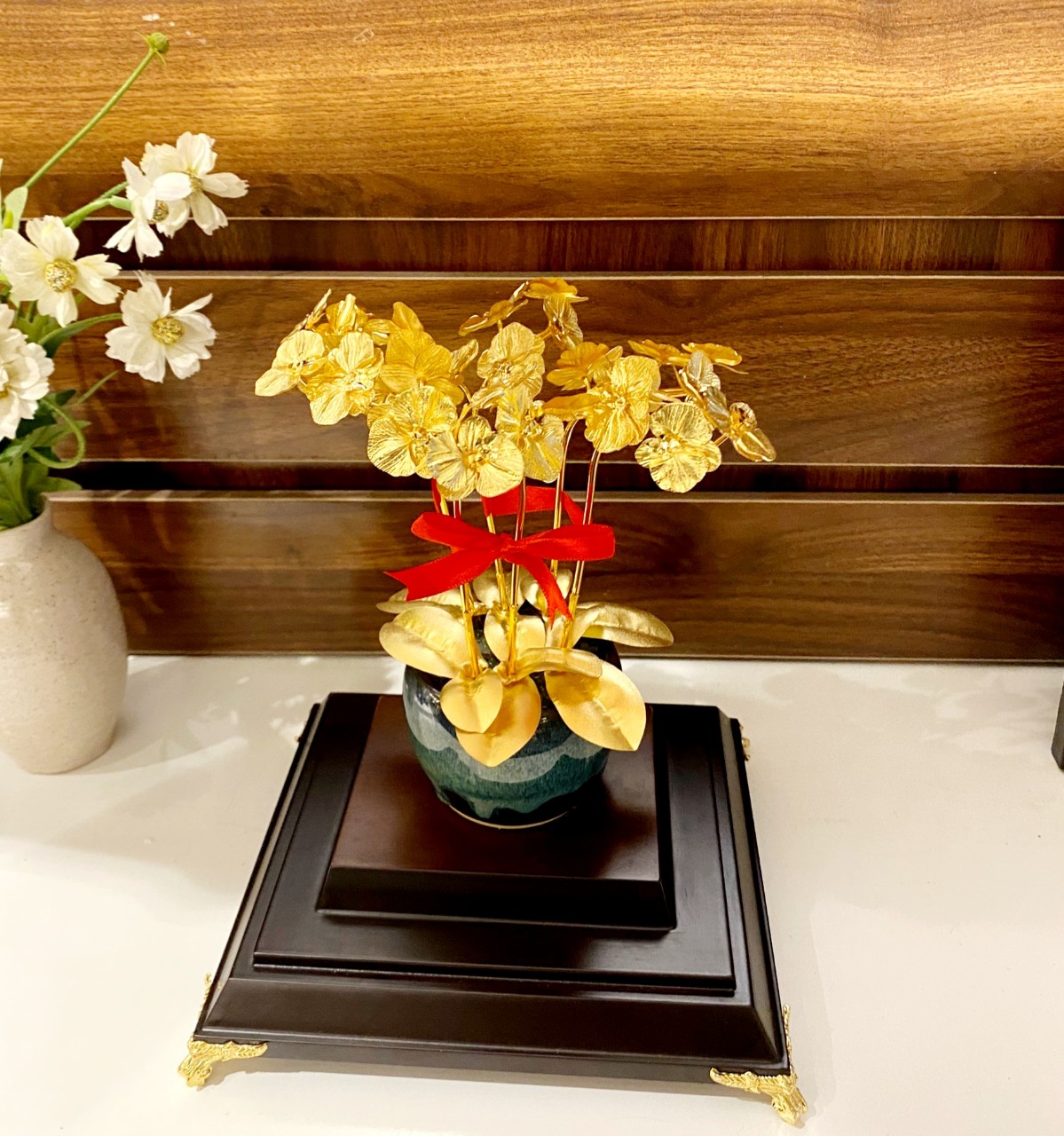 Chậu Hoa Lan Dát Vàng 24K- 6 cành