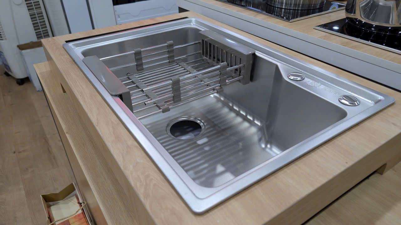 Kích thước: 770*470*230mm Chất liệu: Inox 304 Chậu dập liền 1 khối
