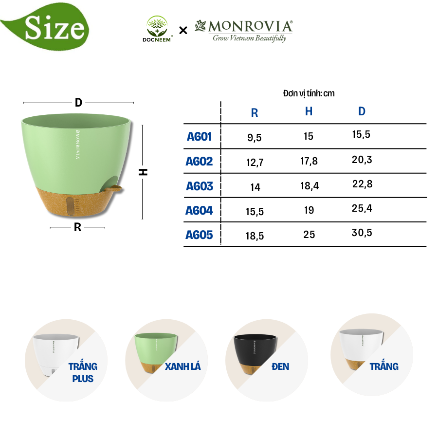 DOCNEEM XIN GIỚI THIỆU ĐẾN BẠN MÃ SẢN PHẨM - CHẬU TRỒNG CÂY TỰ TƯỚI ĐỂ BÀN THÔNG MINH KIỂU DÁNG TRÒN MONROVIA I0 _ Chất liệu: PP cao cấp _ Cấu tạo: Chậu bao