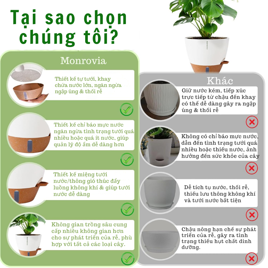 ✨Chậu trồng cây tự tưới thông minh Monrovia A60 cho cây trong nhà và ngoài trời, decor, văn phòng