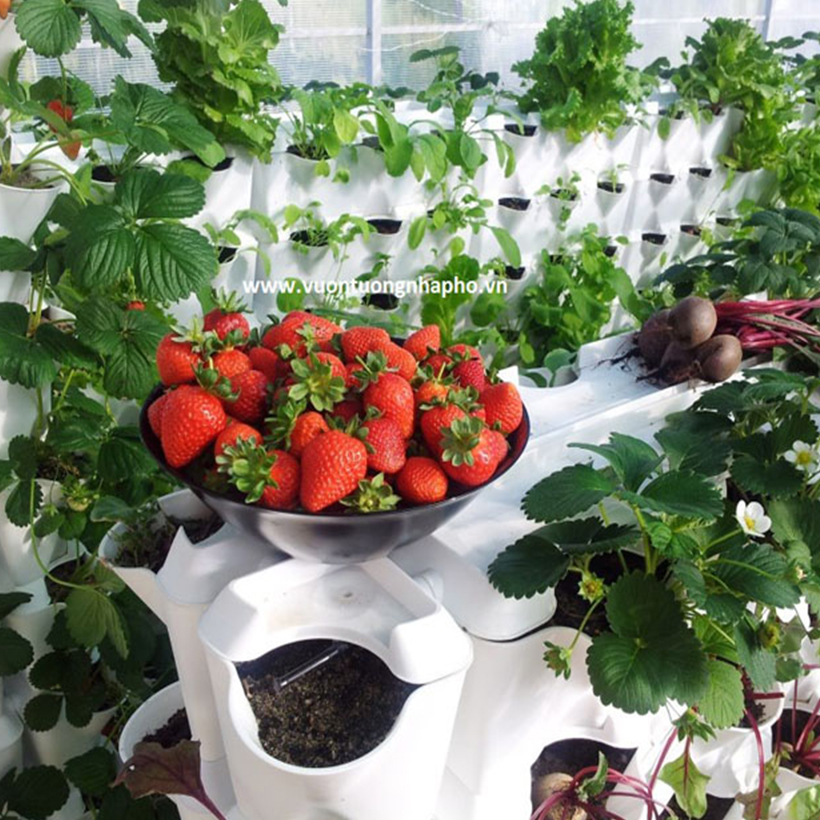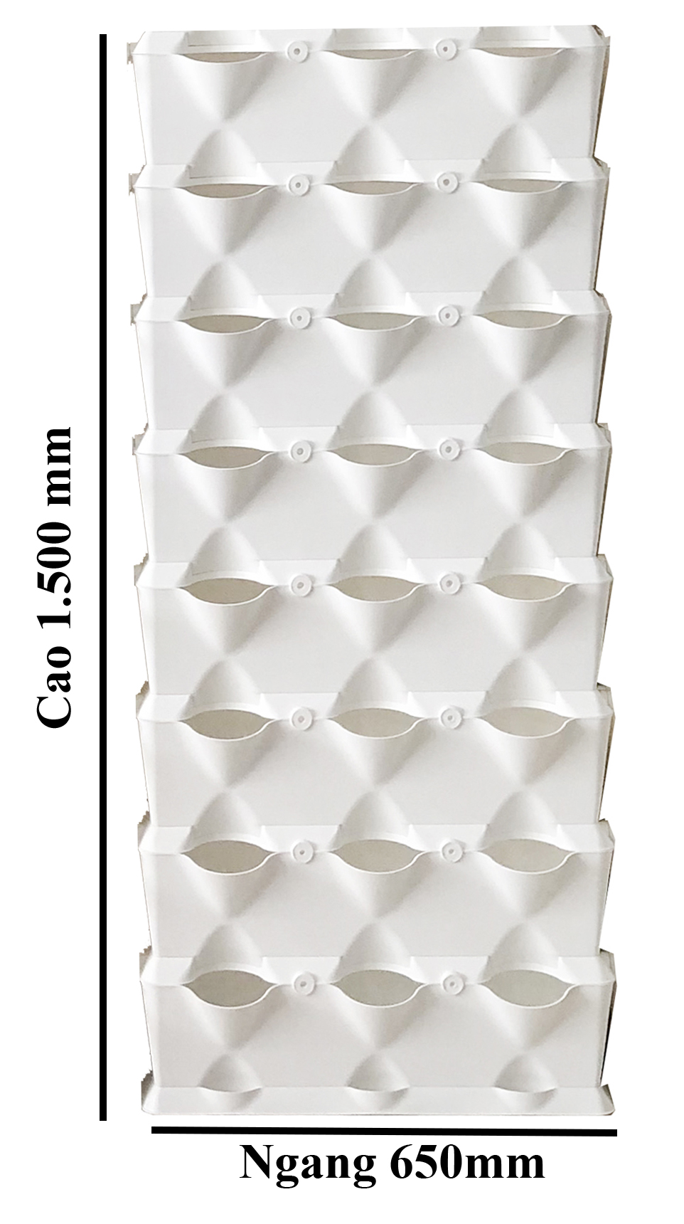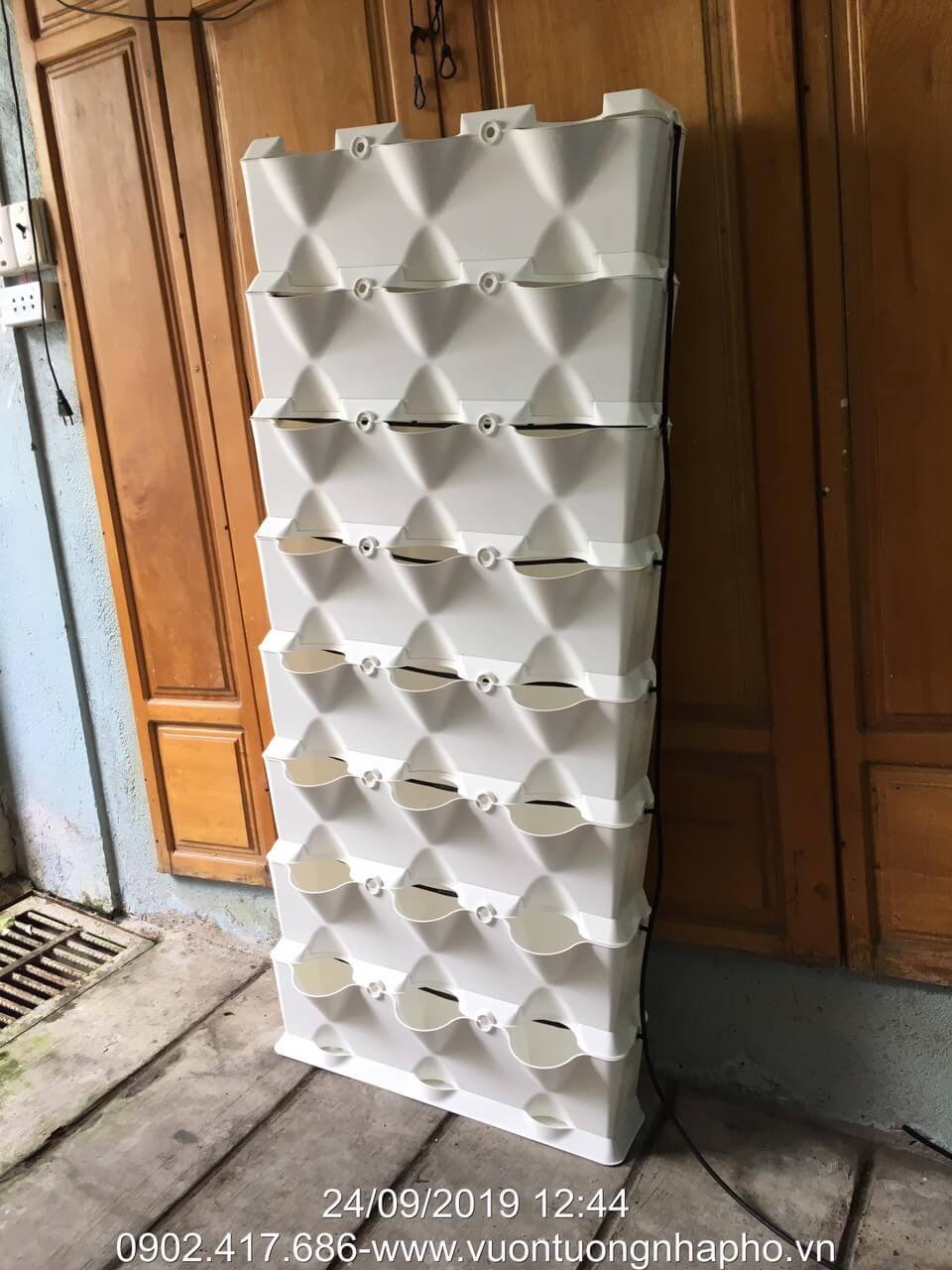 Chậu Module trồng rau Đứng Vertical: 8 tầng Module (Ngang 0.7 x Cao 1.6M X 24 hốc rau sạch)