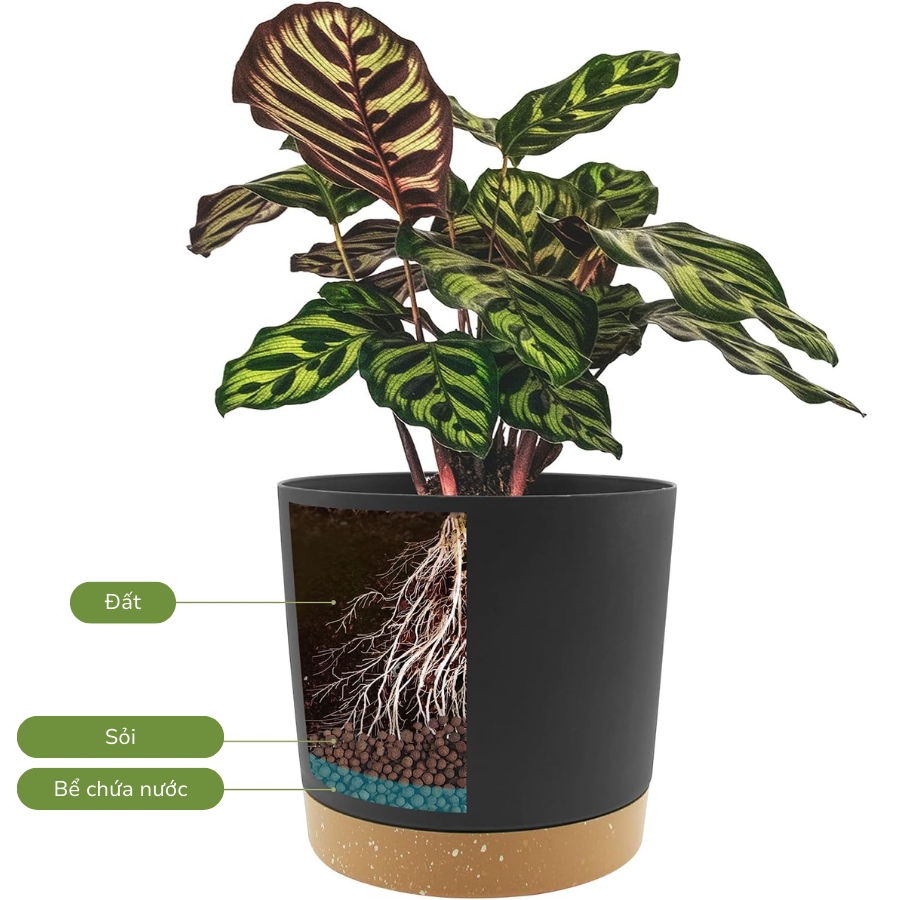 Chậu trồng cây tự tưới nước: Có 3 lỗ thoát nước để tưới nước và đơn giản hóa việc chăm sóc cây, giúp bạn dễ dàng tưới nước cho cây và tránh tắc nghẽn, thiết kế khóa độc đáo cho phép đĩa lót gắn vào chậu để dễ di chuyển và giữ nước. Bạn cũng có thể tháo đĩa lót ra để vệ sinh nồi dễ dàng.