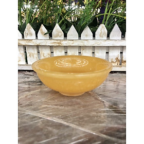 Chất liệu: Đá ngọc hoàng long Kích thước: Đường kính 10,5cm; Cao 4cm; Sâu 2,7cm Khối lượng: 260g