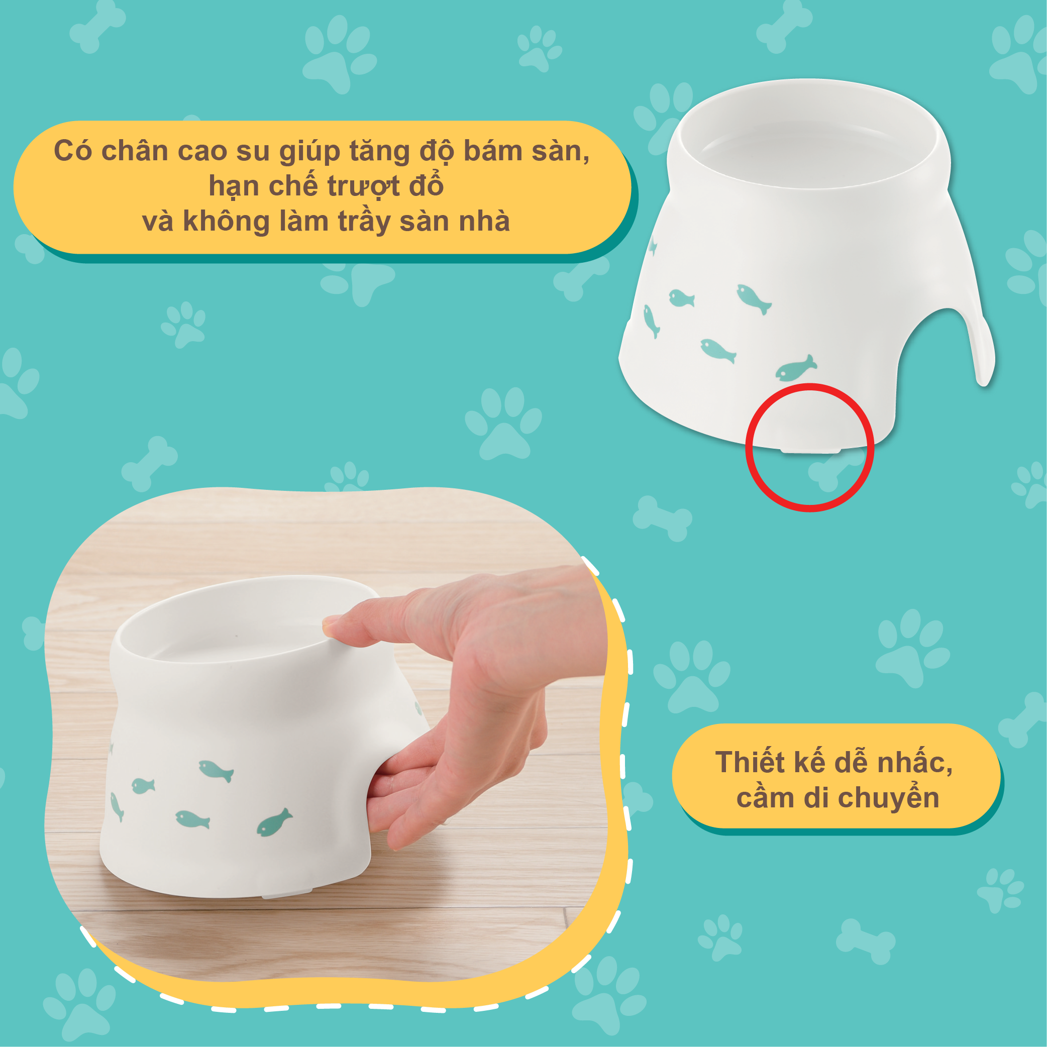 THÔNG TIN SẢN PHẨM - Bát nghiêng 15 độ và có độ cao giúp bảo vệ cổ chó mèo khi ăn uống hằng ngày. - Chất liệu bằng nhựa dày dặn, chống trơn trượt. -
