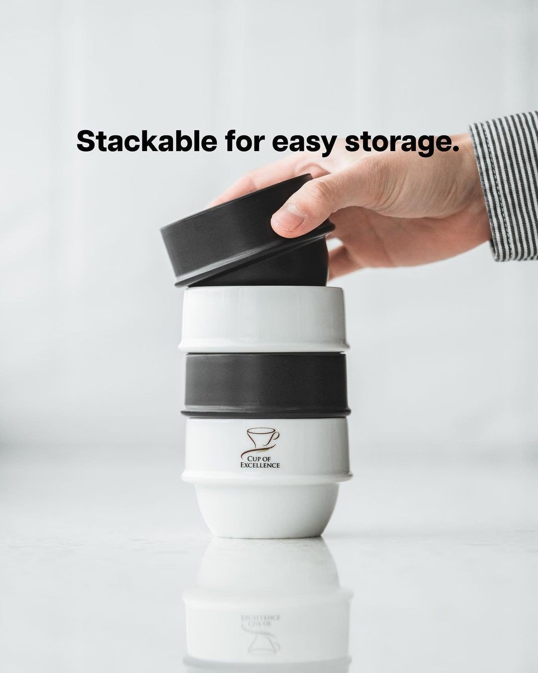 Có thể xếp chồng những chiếc ly lên nhau sau khi cho hạt cà phê hoặc cà phê đã xay vào.