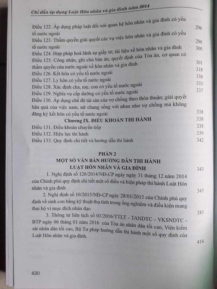 Mục lục: Chương 1: Những quy định chung Chương 2: Kết hôn Chương 3: Quan hệ giữa và chồng Chương 7: Cấp dưỡng Chương 8: Quan hệ hôn nhân và gia đinh có yếu tố