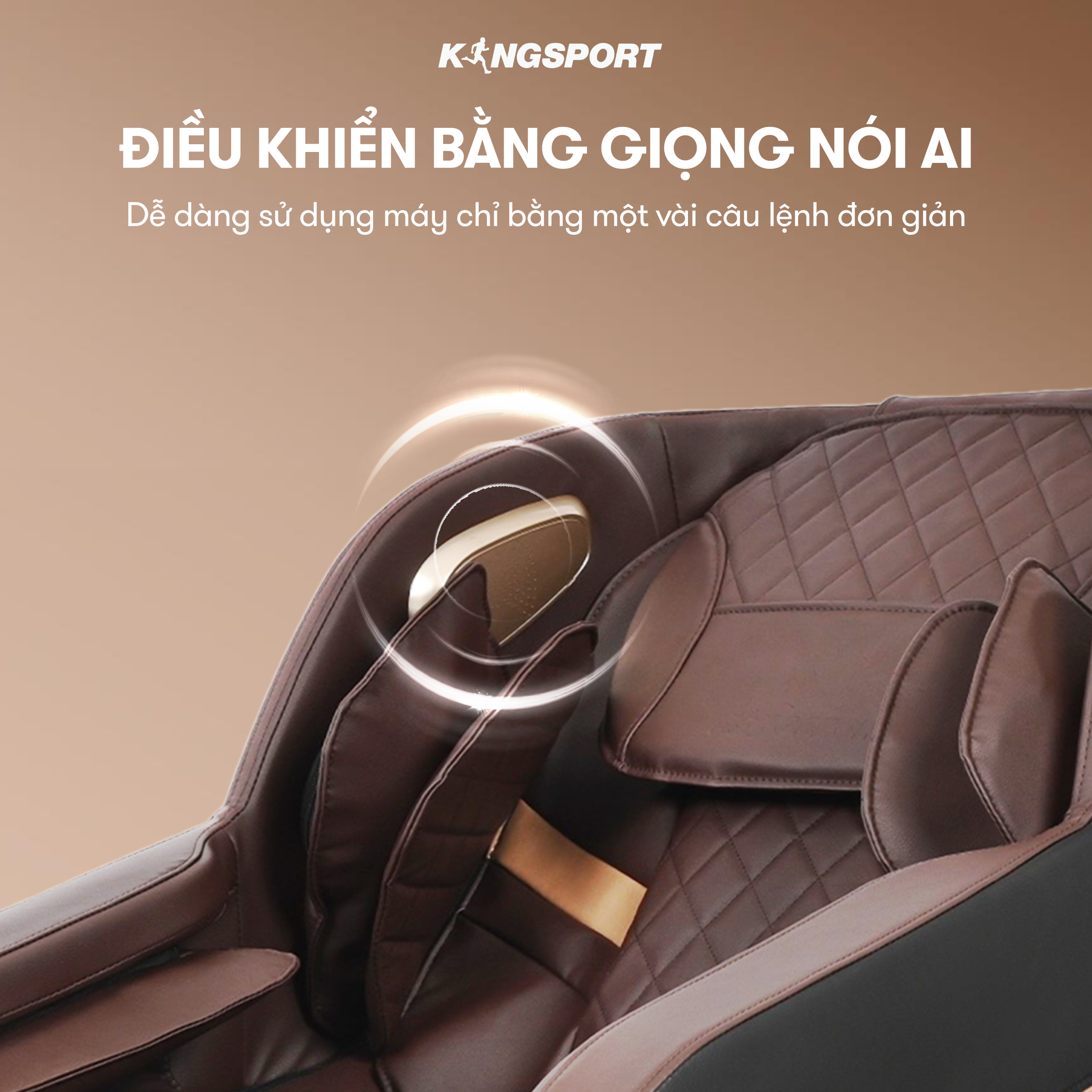 Dòng ghế massage KingSport G9 trang bị tính năng điều khiển bằng giọng nói bằng các câu lệnh đơn giản. Đặc biệt, mẫu ghế massage G9 sử dụng ngôn ngữ tiếng Việt để mọi đối tượng có thể dễ dàng điều khiển các chương trình.