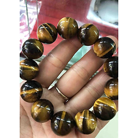 Vòng tay đá mắt hổ tự nhiên vàng nâu nam mệnh kim mệnh thổ size 14ly ạ / Gỗ đá phong thủy Sunny Q8