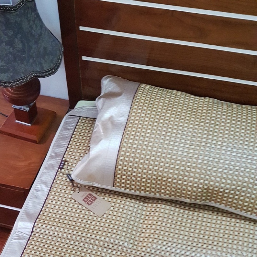 Chiếu điều hòa xuất Nhật hàng cao cấp nằm được 2 mặt (bao gồm túi đựng + 2 vỏ gối)   Chất liệu: Mây tự nhiên – lụa Viscose, nằm được cả 2 mặt Kích