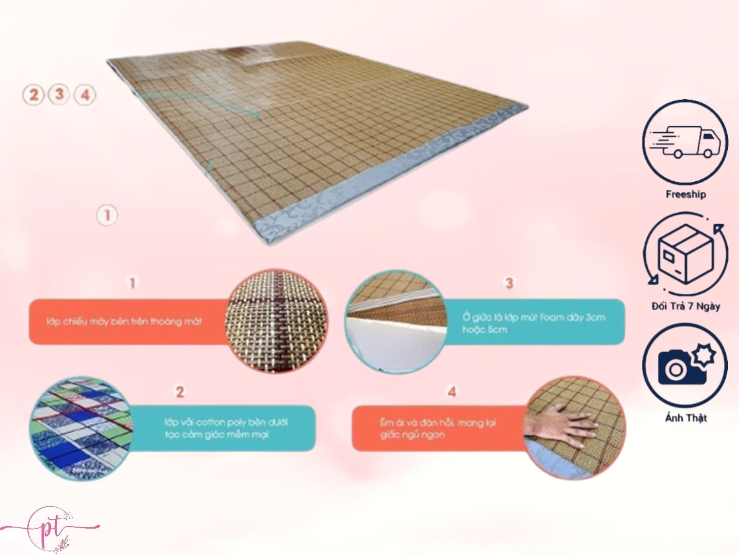 Mua tại TiktokVào mùa hè nắng nóng, sự mềm mại của những sợi vải nệm hoặc drap bỗng trở thành điều gây khó chịu vì chúng ôm sát cơ thể khi nằm, gây ra cảm giác hầm nóng (nếu bạn không có máy lạnh). Đó cũng là lí do mà chiếu điều hòa được sản xuất với tác dụng chính là mang lại sự thông thoáng cho vùng lưng người nằm, và đặc biệt phù hợp với những khách hàng yêu thích cảm giác nằm trên tấm lót mỏng dưới sàn.