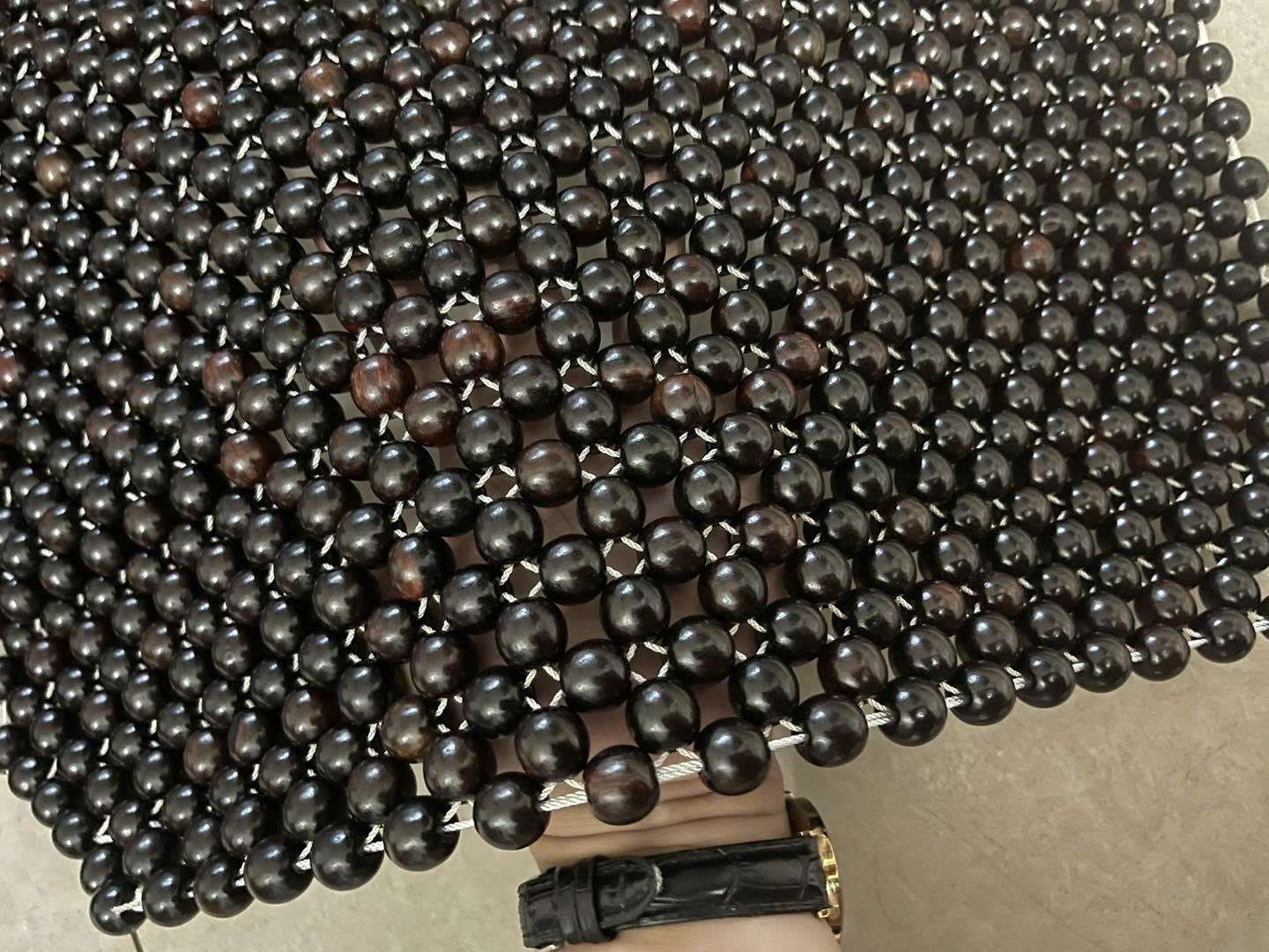 Chiếu Hạt Gỗ Cẩm Cao Cấp Chất liệu: 100% hạt gỗ Cẩm Lai tự nhiên. - Kích thước hạt 1,2cm. - Kích thước chiếu 1,2mx1,9m. - Dây đan chiếu là loại dây dù cao cấp được