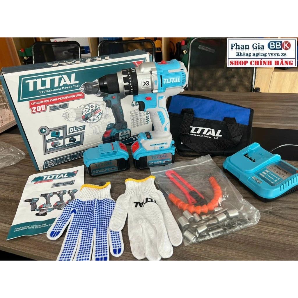 ✨[chính hãƞg] Máy Khoan Pin TOTAL 20V, Đầu Autolock 13mm, Động Cơ Không Chổi Than Hàng Cao Cấp (Bảo Hành 12 Tháng)