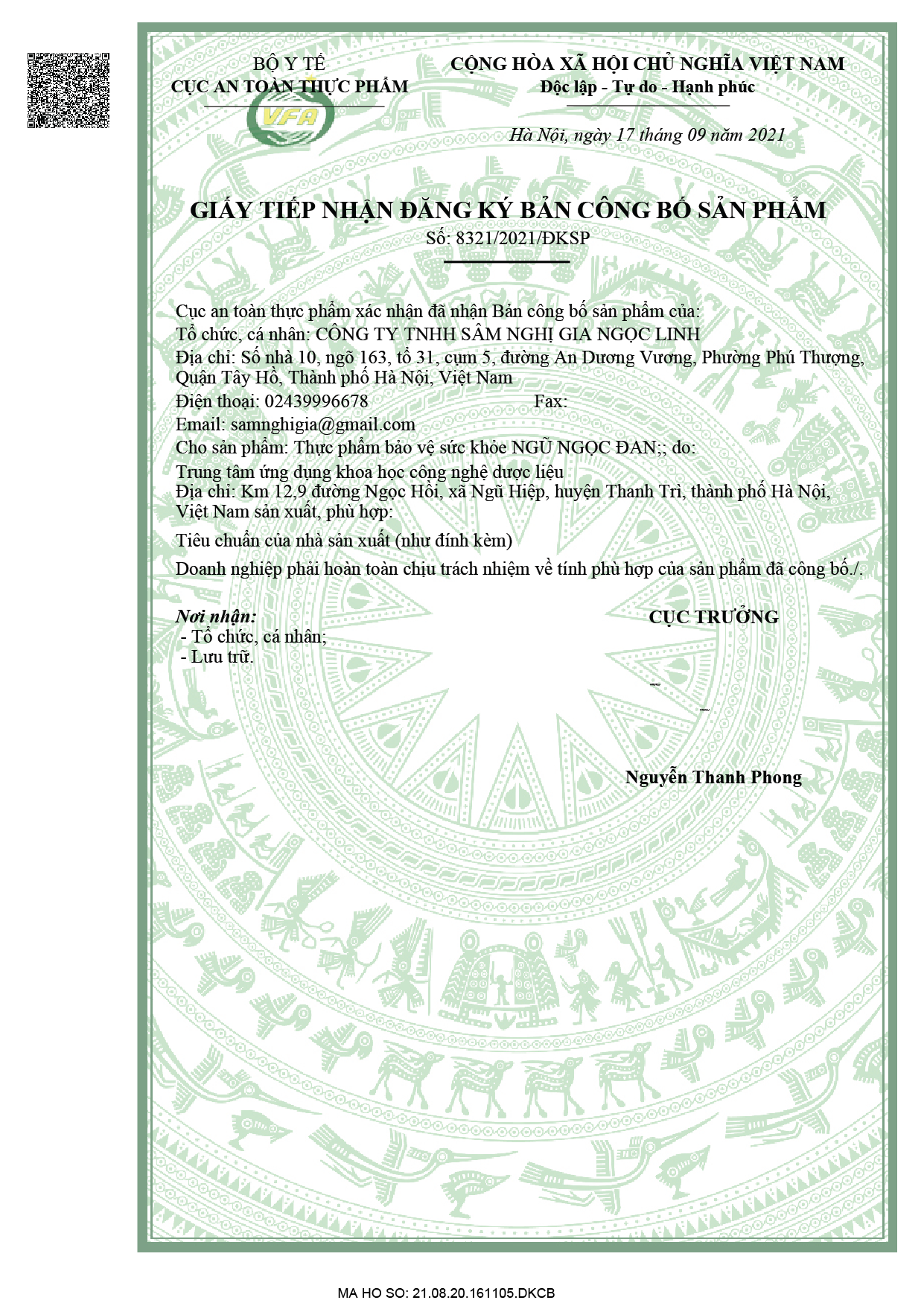 Sản xuất tại: Trung tâm Ứng dụng khoa học công nghệ dược liệu – Trực thuộc Viện Dược liệu – Bộ Y tế. Giấy chứng nhận GMP: 68/2020/ATTP – CNGMP do Cục ATTP – Bộ Y tế, cấp ngày 15/10/2020. Địa chỉ: Km 12,9 đường Ngọc Hồi, xã Ngũ Hiệp, huyện Thanh Trì, thành phố Hà Nội