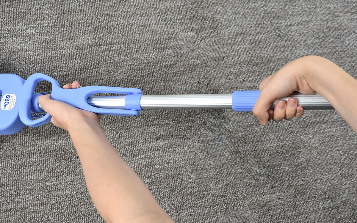 • Điều chỉnh độ dài của tay cầm: Khi điều chỉnh độ dài của tay cầm, hãy giữ nó như trong hình minh họa và xoay ống này theo hướng mũi tên để nới lỏng và trượt nó. Vào vị trí có độ dài yêu thích, xoay ống theo chiều ngược lại thì dừng lại. Nếu tay cầm bị lỏng trong quá trình sử dụng, hãy siết chặt lại. Nó không mở rộng hoặc co lại ngay cả khi nắp được xoay