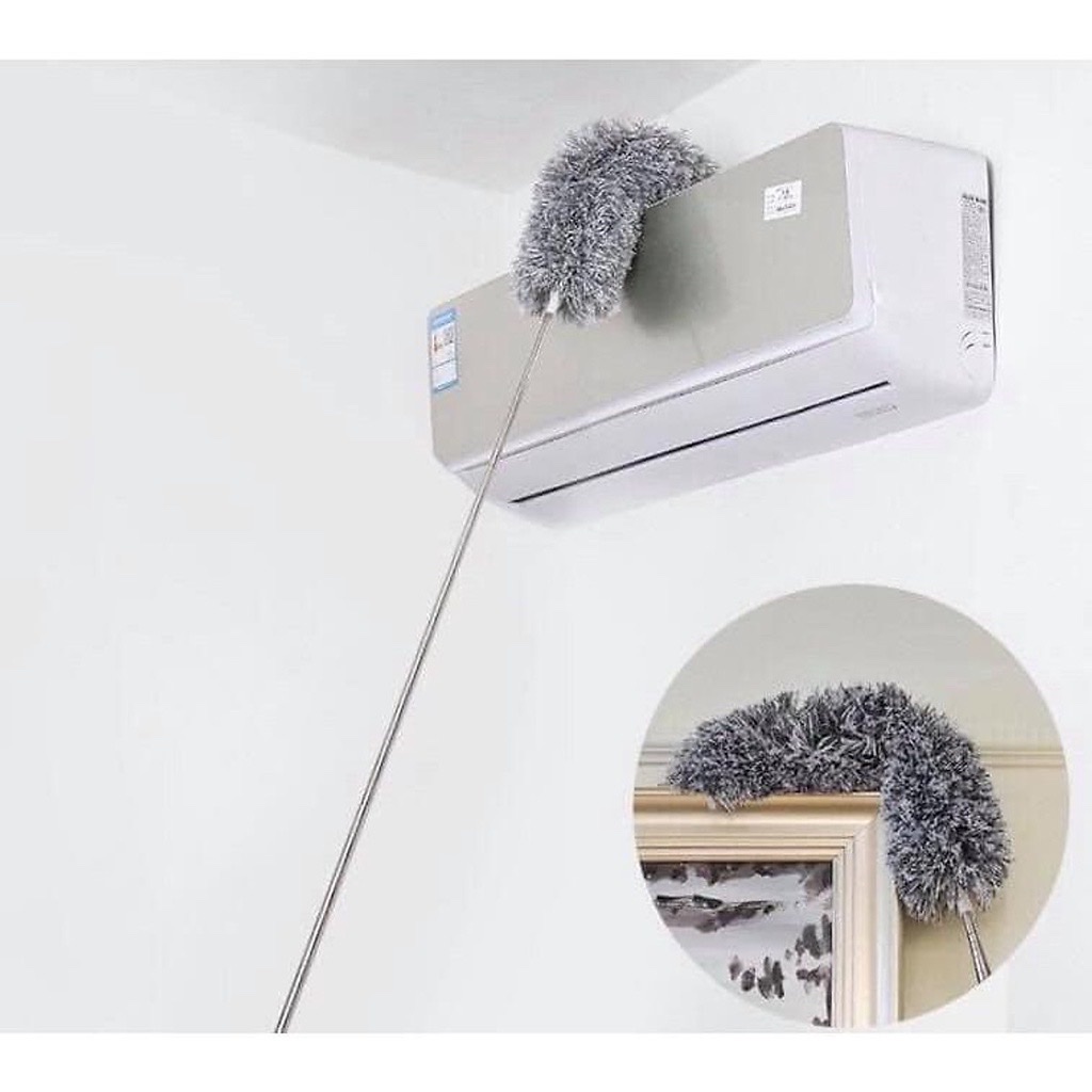 -Chổi quét bụi trần nhà kéo dài 2M8 , lông chổi mềm mịn giúp hút ,cuốn giữ bụi bẩn, đầu chổi có thể gập 90 độ hoặc vặn xoắn ,cán chổi bằng inox có thể