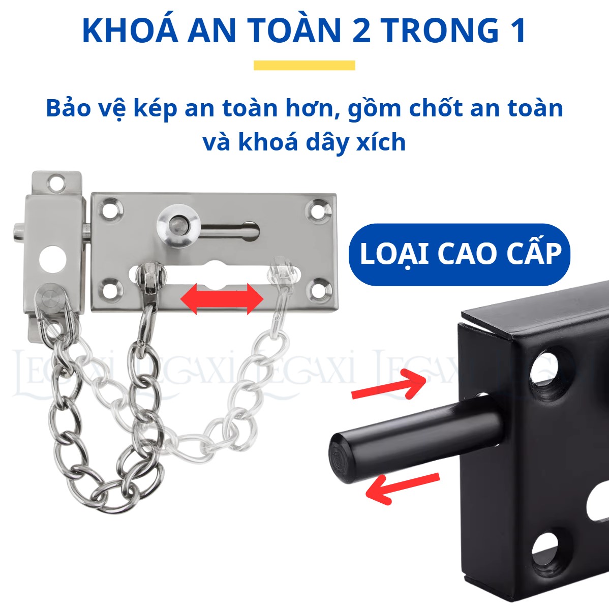 ✨Chốt cửa dây xích, gài cửa chống trộm, khóa gài chặn cửa inox nhà ở, chung cư, phòng ngủ Legaxi