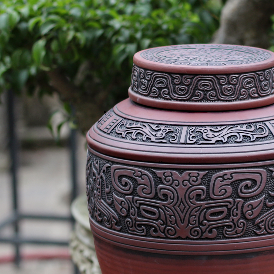 Chum sành ngâm rượu Tài Lộc 50 lít là một trong những sản phẩm độc đáo. Hai chữ "Tài Lộc" trên chum sành thể hiện một ý nghĩa phong thủy hết sức đặc biệt, ngụ ý