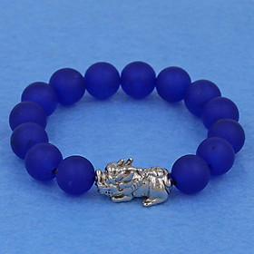 ✨Chuỗi đeo tay thạch anh xanh dương mờ 12 ly - cẩn Tỳ Hưu inox bạc VTAXDMTHT12 - hợp mệnh Mộc, mệnh Thủy