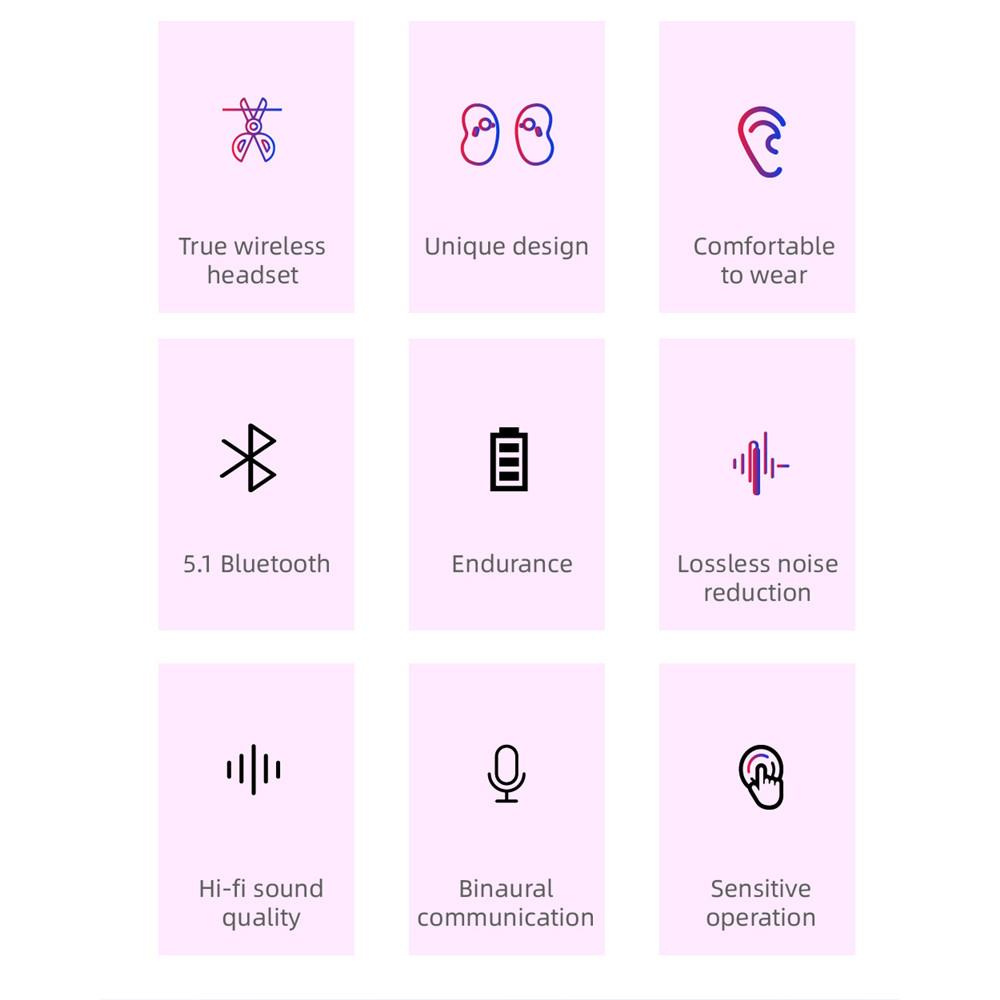 Features: Adopt DSP anti-interference chip and BT5.0 chip, fast and stable transmission, low power consumption. High-quality eight-core 13mm speaker unit, good sound quality, comfortable audio experience. CVC intelligent noise reduction technology can automatically reduct environmental