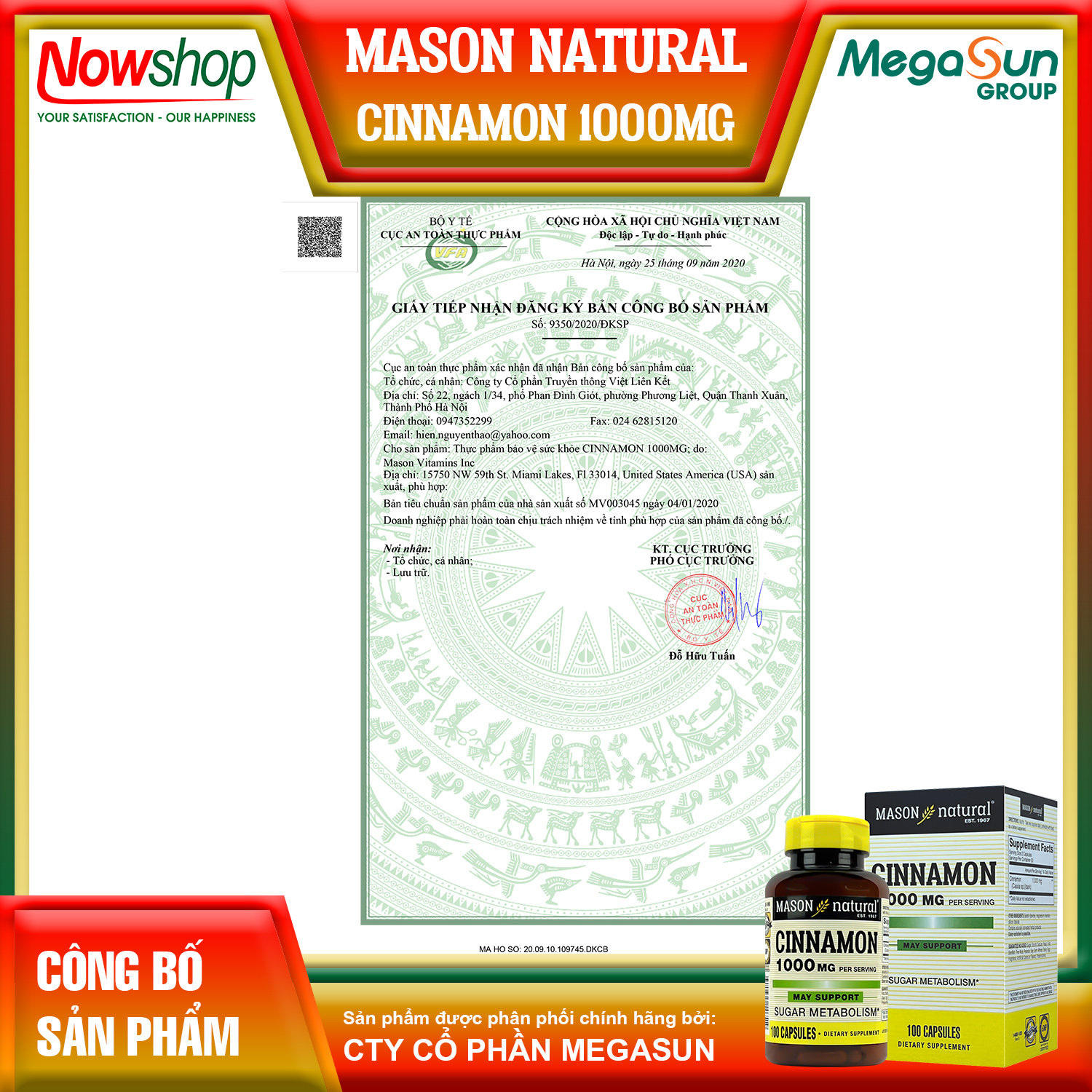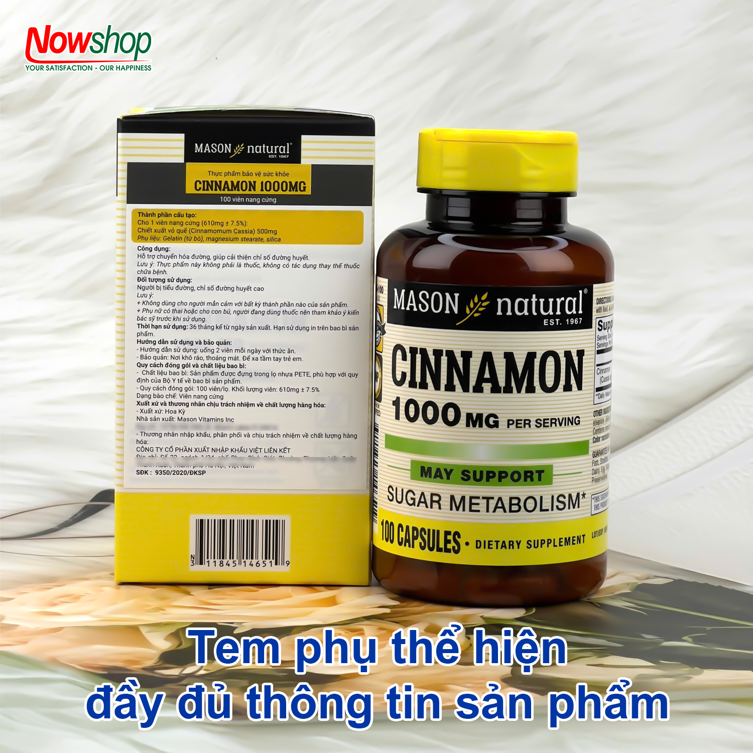 MASON CINNAMON 1000MG - ỔN ĐỊNH ĐƯỜNG HUYẾT TỰ NHIÊN - SỐNG KHỎE MỖI NGÀY! Chiết xuất quế nguyên chất 1000mg - Hỗ trợ kiểm soát đường huyết - An toàn cho sức khỏe Mason