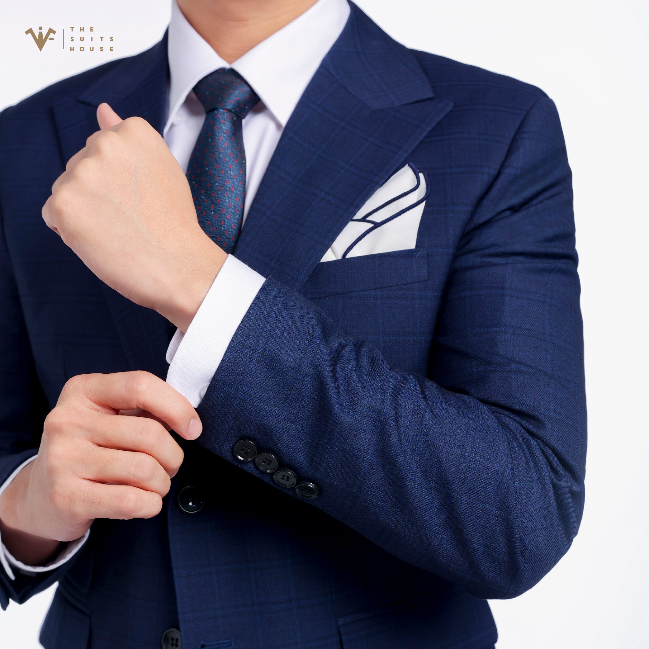 THÔNG TIN SẢN PHẨM - Tên sản phẩm: Bộ suit XANH NAVY KẺ ẨN, 6 KHUY 3 TÚI - Thương hiệu: THE SUITS HOUSE - Xuất xứ: Việt Nam - Chất liệu: Vải sợi len