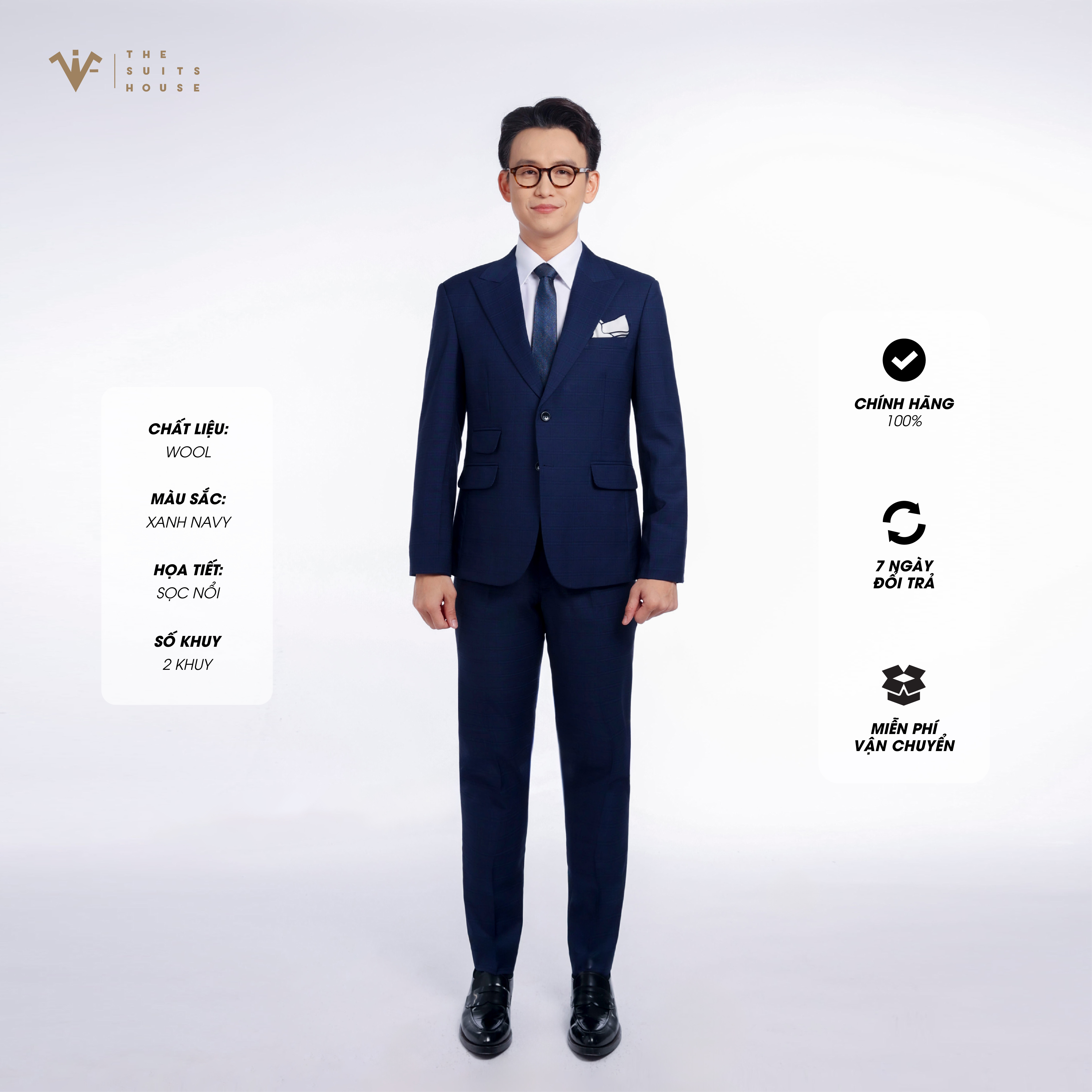 - Tên sản phẩm: Bộ suit xanh navy kẻ ẩn - Thương hiệu: THE SUITS HOUSE - Xuất xứ: Việt Nam - Chất liệu: Vải sợi len lông cừu (Wool) - Hãng vải Nobility (nhập