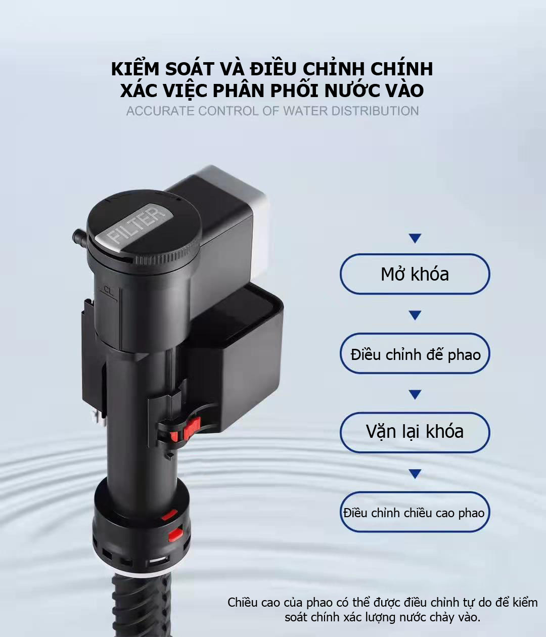 - Thiết kế chống kẹt, tạm biệt hiện tượng kẹt nước - Phao có thể điều chỉnh được mực nước trong két.