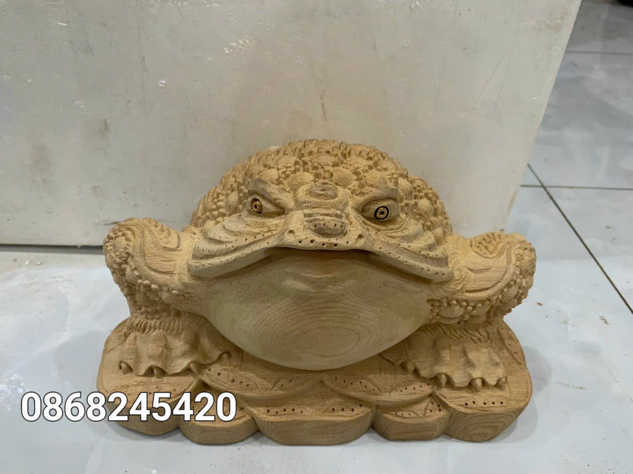 Cóc thiềm thừ hút tài nhả lộcGỗ ngọc am ( hàng mộc )Kt : ngang 29 cao 26 sâu 26 zalo 0389889968