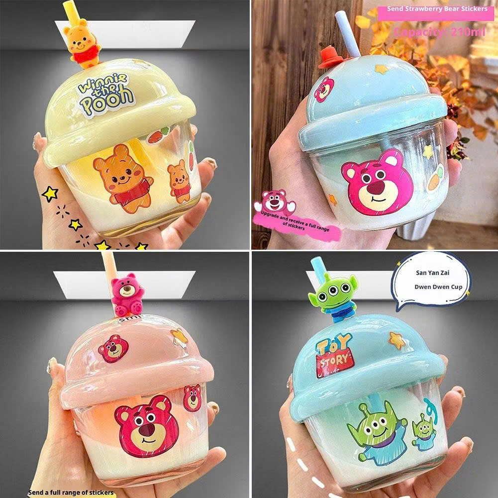 ✨Cốc Thủy Tinh 210ml Cho Bé + Ống Hút + Sticker Tặng Kèm Tiện Dụng - HÀNG CHÍNH HÃNG MINIIN