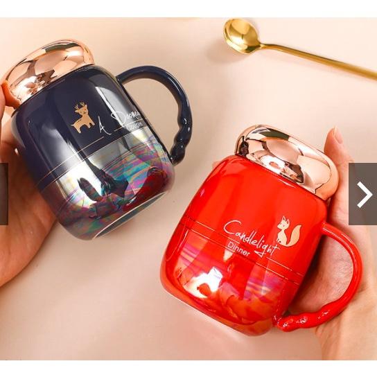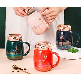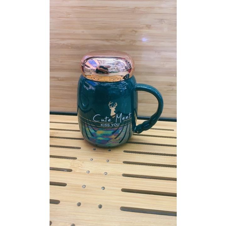 ✨CỐC UỐNG NƯỚC BẰNG SỨ NẮP VÀNG HỒNG MÀU SẮC HOT TREND 2022