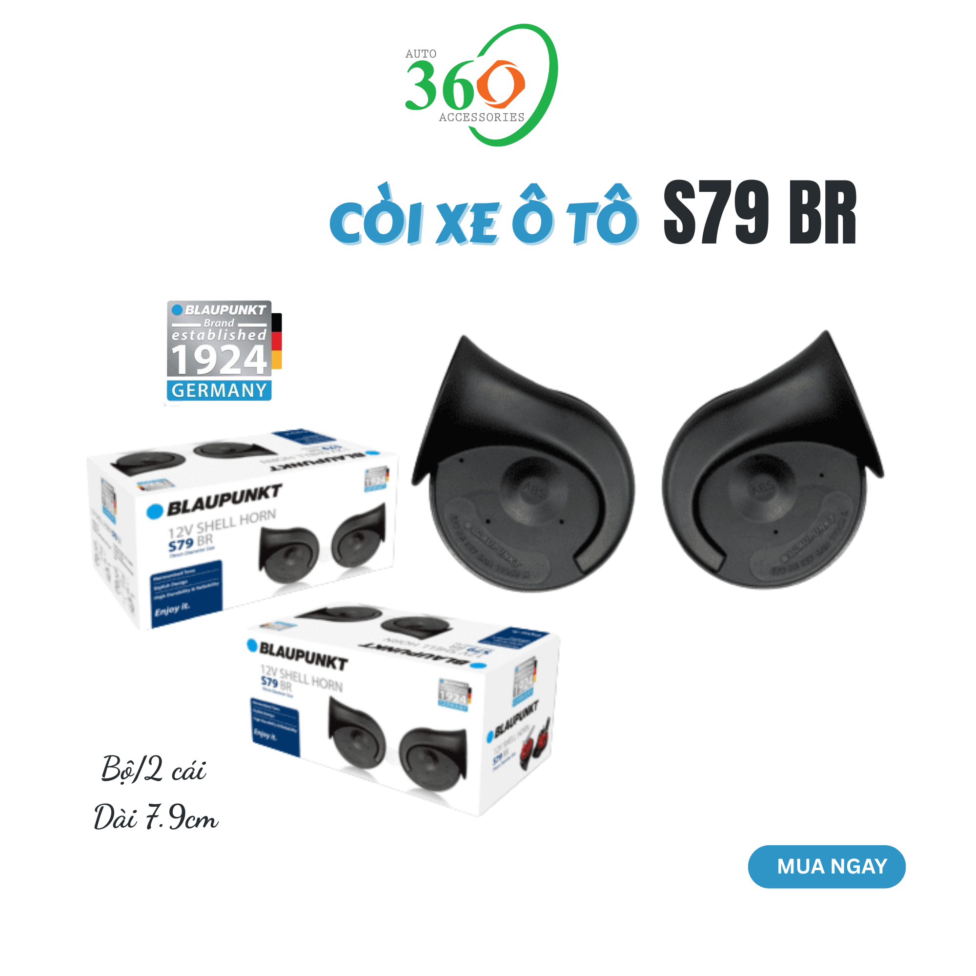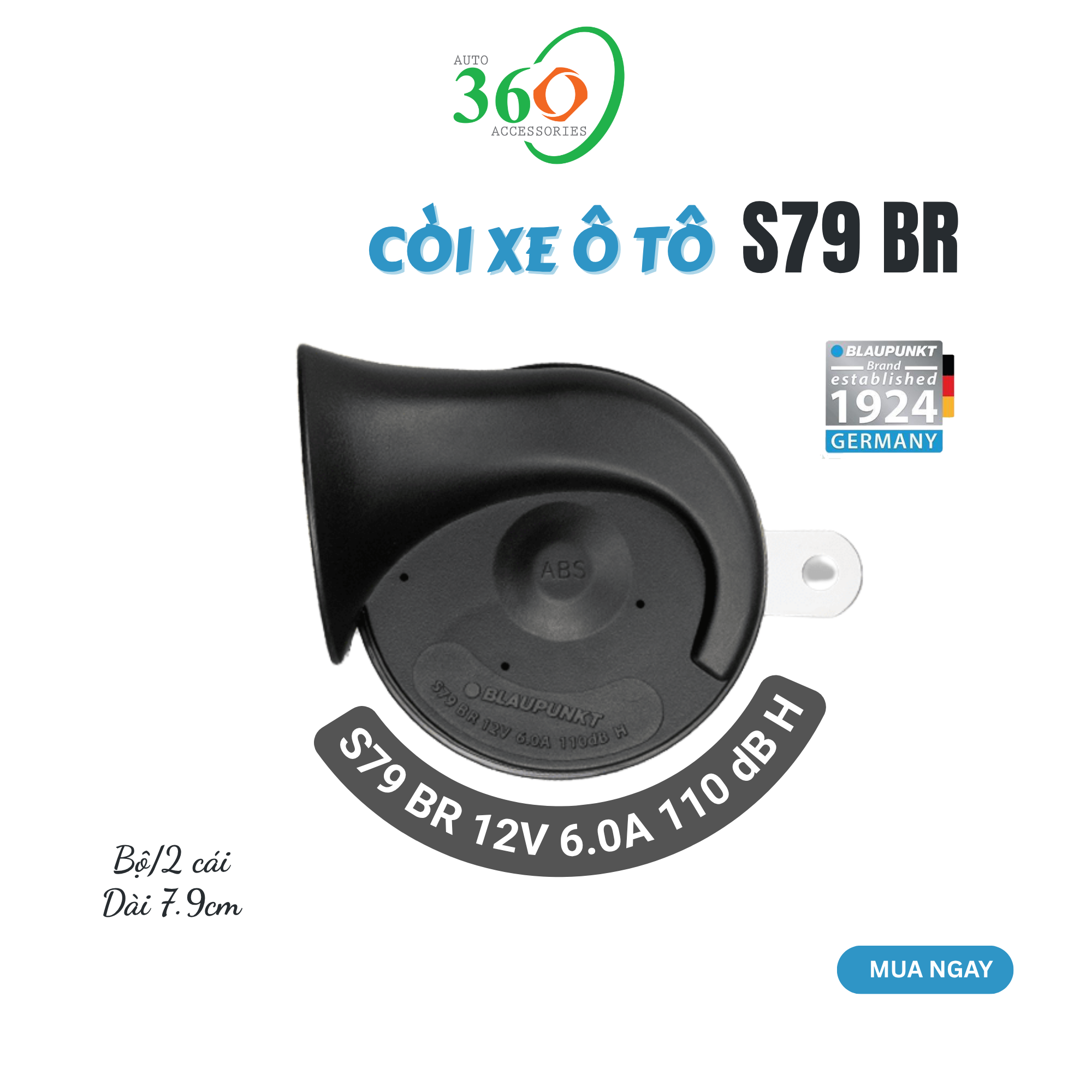Mua tại TiktokBạn có biết rằng âm thanh còi xe yếu là nguyên nhân khiến nhiều tài xế không thể phản ứng kịp trong tình huống nguy hiểm? Còi ô tô Blaupunkt S79 là giải pháp lý tưởng cho những ai đang tìm kiếm một chiếc còi xe ô tô nhỏ gọn thay thế cho những chiếc còi nguyên thủy kêu quá nhỏ. Sản phẩm S79 đến từ Blaupunkt - một thương hiệu nổi tiếng của Đức, có từ 1924, với các những ưu việt: