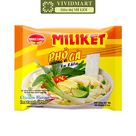 Phở Gà MILIKET 60G là sản phẩm ăn liền chất lượng cao được làm từ gạo, muối, đường, dầu cọ tinh luyện và gia vị được chọn lọc cẩn thận và sản xuất trên dây chuyền hiện đại khép kín, không sử dụng phụ gia độc hại nên tuyệt đối an toàn với sức khỏe người tiêu dùng.