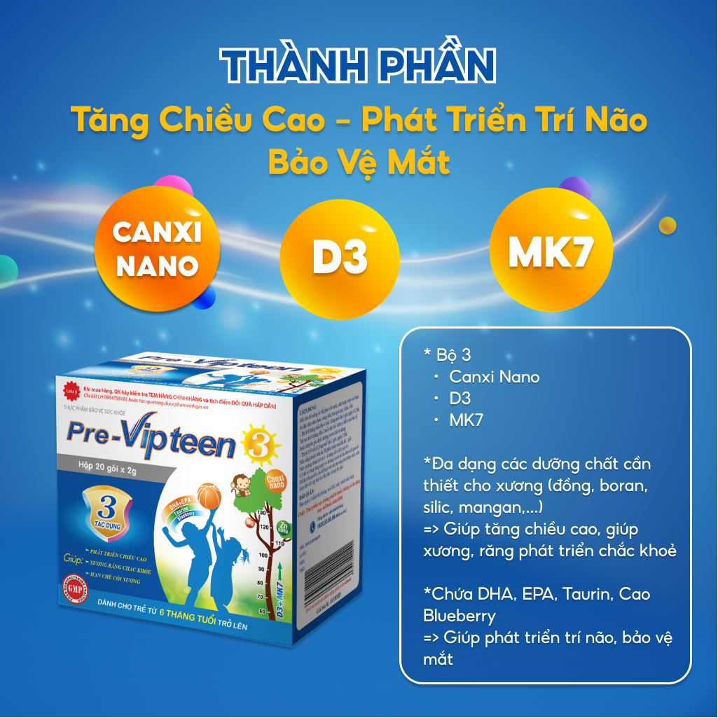 Pre Vipteen 3 Mua 6h tặng 1h tem tích điểm -Bổ sung canxi cho trẻ từ 6 tháng, phát triển trí não