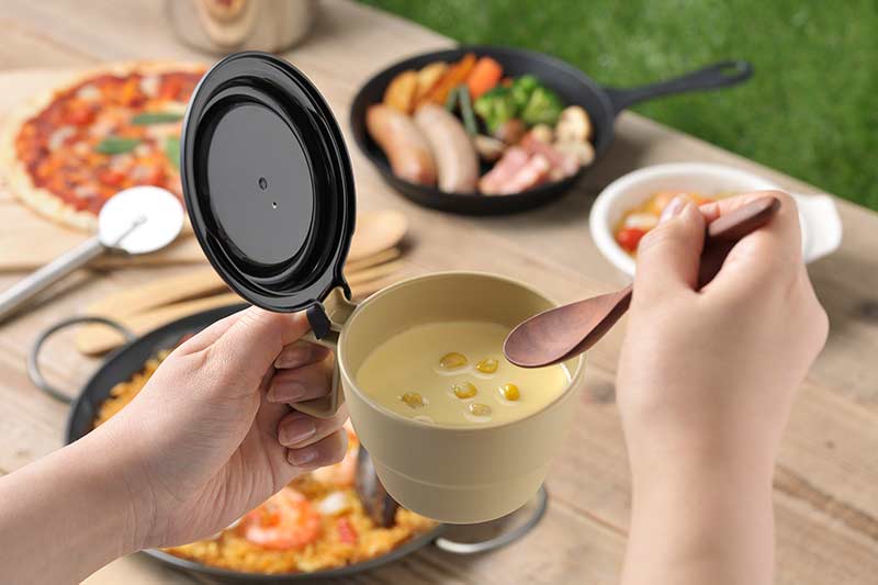 Thiết kế nắp đậy an toàn giúp giữ gìn vệ sinh cốc & đồ uống bên trong.