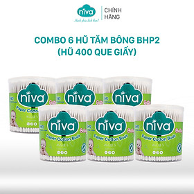✨Combo 06 Tăm Bông Niva Cho Trẻ Sơ Sinh Hũ Xoay 400 Que Thân Giấy BHP2 Bông Tự Nhiên Kháng Khuẩn An Toàn, Thân Thiện Môi Trường
