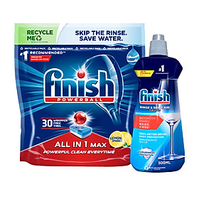 Combo: Viên rửa bát Finish All in one 100 viên +Dung dịch Nước làm bóng finish 750ml +Muối rửa bát finish 1.5kg cho Máy rửa bát chén là bộ 3 sản phẩm đầy đủ chức