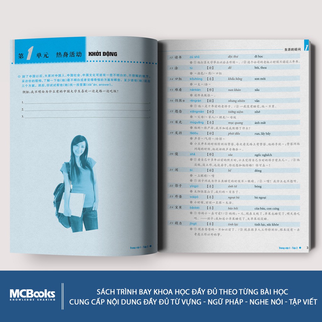 Các bài học trong “Giáo trình Hán ngữ 2 Tập 1 Quyển hạ phiên bản 3″ được Mcbooks thiết kế như sau: 1. Bài đọc, 2. Từ mới, 3. Chú thích, 4. Ngữ âm, Ngữ
