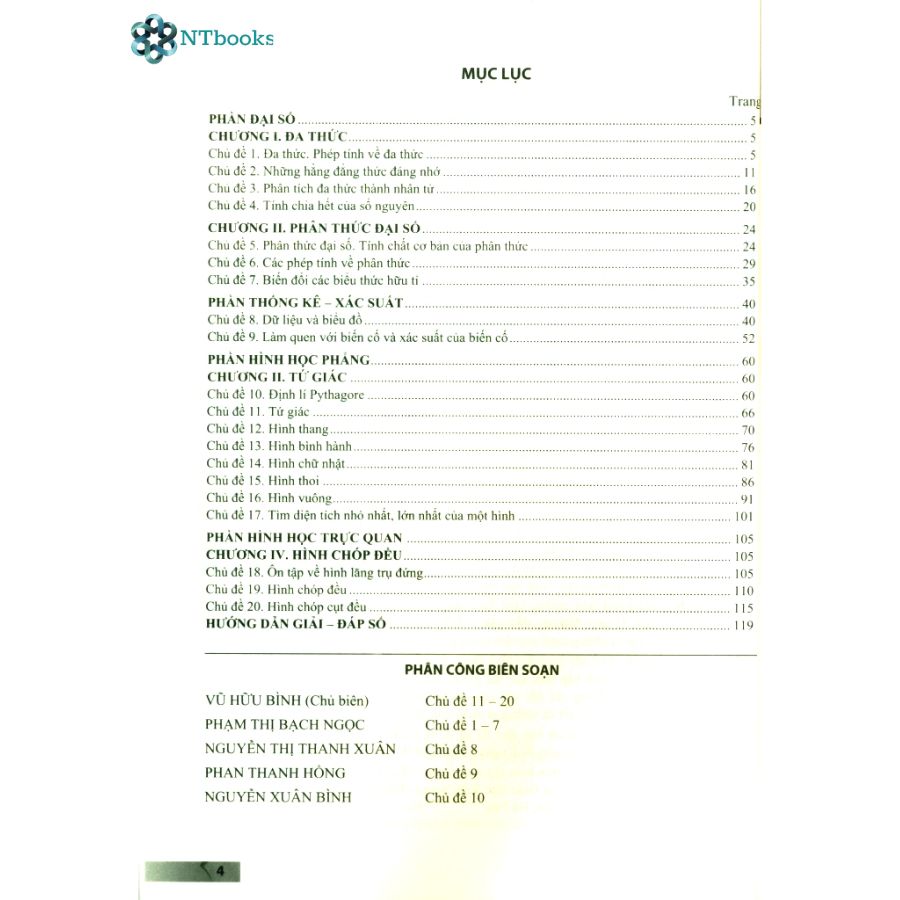 NỘI DUNG SÁCH Chương 1. Chia hết, ước và bội Chương 2. Số nguyên tố, hợp số Chương 3. Số chính phương, số lập phương, căn thức Chương 4. Phương trình