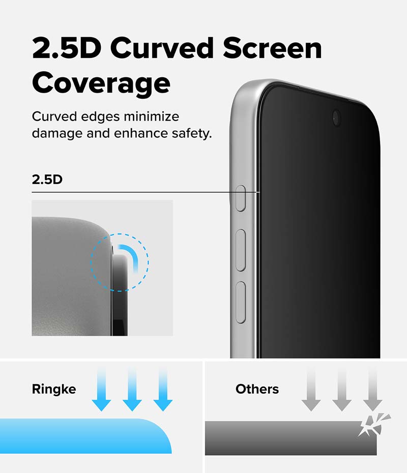 - Mép dán cường lực 2.5D, chuyển tiếp mượt mà giữa màn hình thiết bị và miếng dán cường lực thông qua mép cong mềm mại