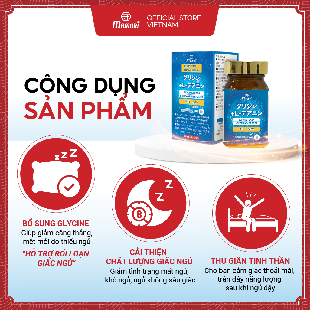 ✨Combo 2 Hộp Viên uống MAMORI Glycine L-Theanine giúp giảm căng thẳng - stress, Hỗ trợ ngủ ngon, ngủ sâu giấc (60 Viên)