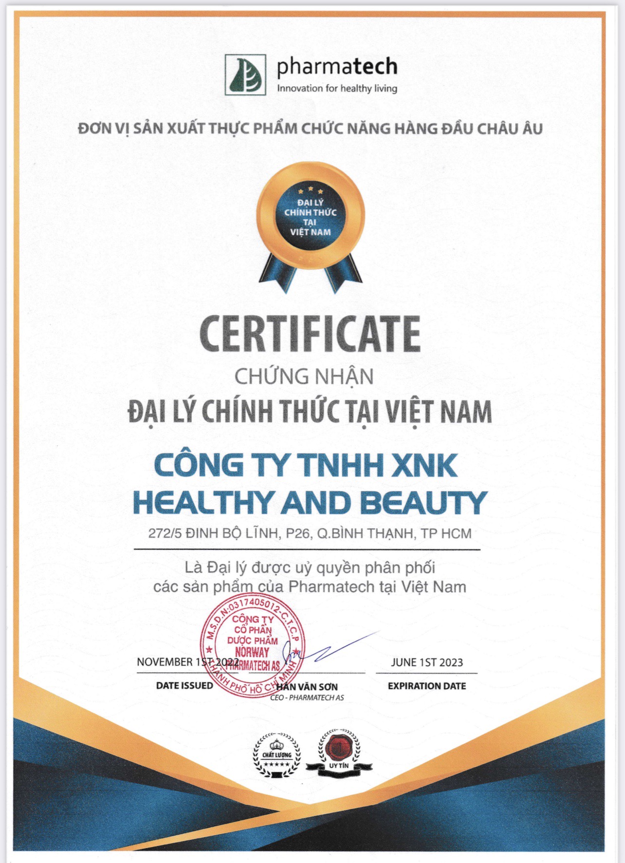 - Sản phẩm được sản xuất tại Pharmatech AS, Na Uy.