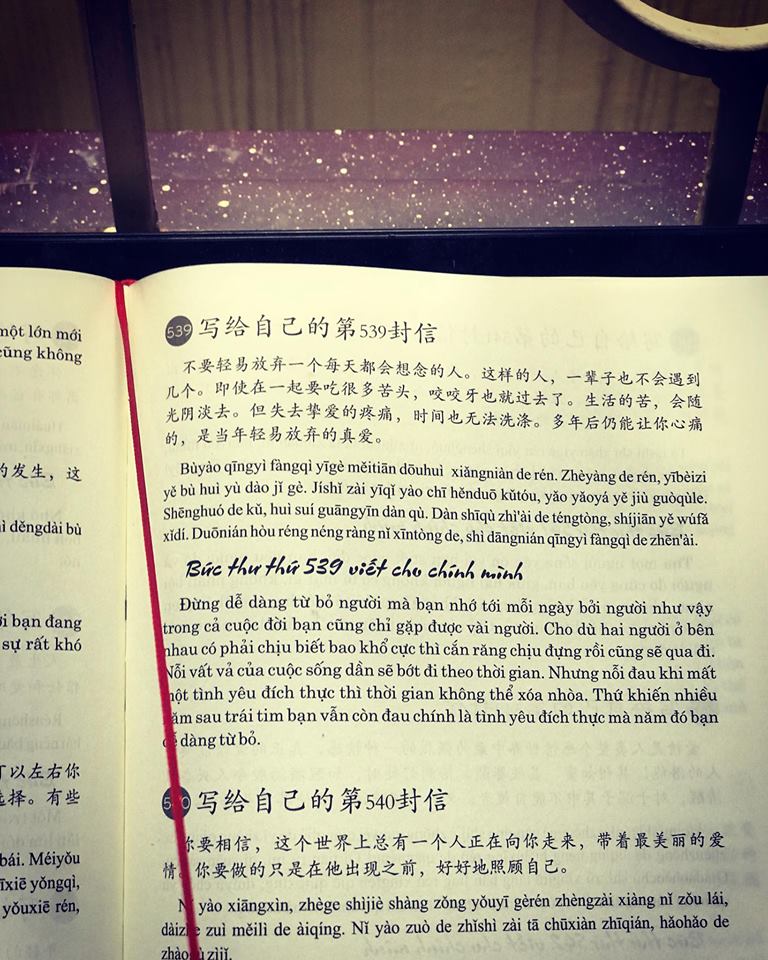 Mua tại Tiktok- Giới thiệu sách: 999 Bức Thư Viết Cho Chính mình (Song Ngữ Trung Việt Có Phiên Âm) - (Bản dịch chuẩn và đầy đủ) Tác giả: Nhật Phạm Số trang: 509 Năm phát hành: 2021 Công ty phát hành: Tuệ Lâm Linh Nhà xuất bản Hồng Đức Với nền văn hóa lâu đời đặc sắc và vô cùng phong phú của Trung Quốc, ngôn ngữ Trung trở thành một ngôn ngữ được nhiều bạn trẻ trên thế giới yêu thích, trong đó có Việt Nam. Những cuốn sách song ngữ có phiên âm mang màu sắc hạt giống tâm hồn vừa giúp người học tiếng Trung nâng cao thêm vốn từ vựng, cách diễn đạt, vừa giúp họ làm mát tinh thần, chiêm nghiệm được nhiều triết lí sống chưa được ấn hành nhiều ở Việt Nam. Với mong muốn giúp những bạn trẻ yêu thích tiếng Trung nhưng trình độ chưa cao có thể tiếp cận được với những triết lí của cuộc sống cũng như phát triển được ngôn ngữ, chúng tôi xin được giới thiệu cuốn sách 999 bức thư viết cho chính bạn với phiên bản đầy đủ chữ Hán, phiên âm, tiếng Việt. Hi vọng rằng cuốn sách mà chúng tôi ví như một chai nước dành cho những kẻ bộ hành giữa sa mạc sẽ giúp ích được cho nhiều người trẻ có thêm nhiều năng lượng, động lực, sự tự tin để bước về phía trước. Các bạn đọc đi, tin tôi đi, các bạn có thể không cần một đôi giày xịn, một chiếc áo đẹp, nhưng cuốn sách này thì nên có, sẽ là báu vậtgối đầu giường của các bạn học tiếng Trung. Bức thư số 1 viết gửi bản thân: Bắt đầu từ ngày hôm nay, mỗi ngày đều phải mỉm cười, trên đời này, ngoài cái chết, tất cả chỉ đều là chuyện nhỏ. Cho dù có gặp phải chuyện buồn gì, cũng đừng tự làm khó bản thân; mặc cho ngày hôm nay có bao điều tồi tệ xảy ra, cũng đừng cảm thấy đau buồn. Ngày hôm nay là ngày bạn trẻ tuổi nhất trong tất cả những chuỗi ngày sau này, bởi vì còn có ngày mai, cho nên hôm nay mãi mãi vẫn chỉ là điểm xuất phát. 写给自己的第1封信 从今天开始,每天微笑吧,世上除了生死,都是小事。不管遇到了什么烦心事,都不要自己为难自己;无论今天发生多么糟糕的事,都不应该感到悲伤。今天是你往后日子里最年轻的一天了,因为有明天,今天永远只是起跑线。
