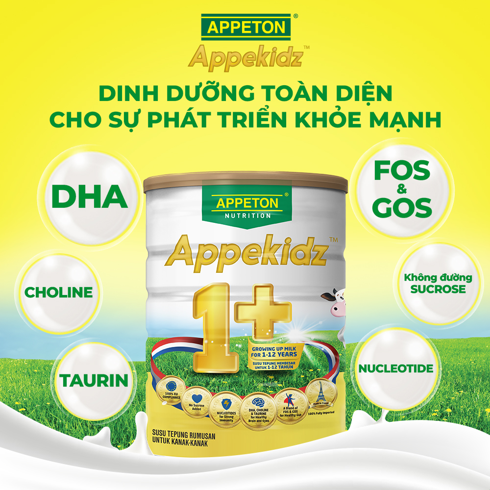 APPEKIDZ là sản phẩm dinh dưỡng công thức dành cho trẻ từ 1 đến 12 tuổi. Công thức độc quyền với hệ thống miễn dịch IMMU gồm Nucleotides, DHA, Taurine, Choline, FOS và GOS, giúp hỗ trợ sự phát triển toàn diện cho trẻ.